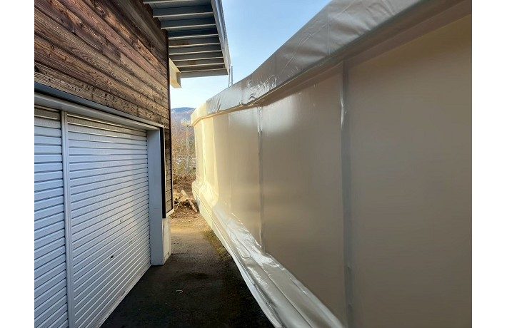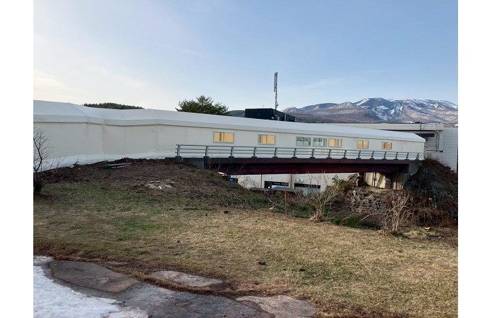 愛知県にて間口6.5m 奥行16m開閉式テント/5スパンの張替工事を行・・・