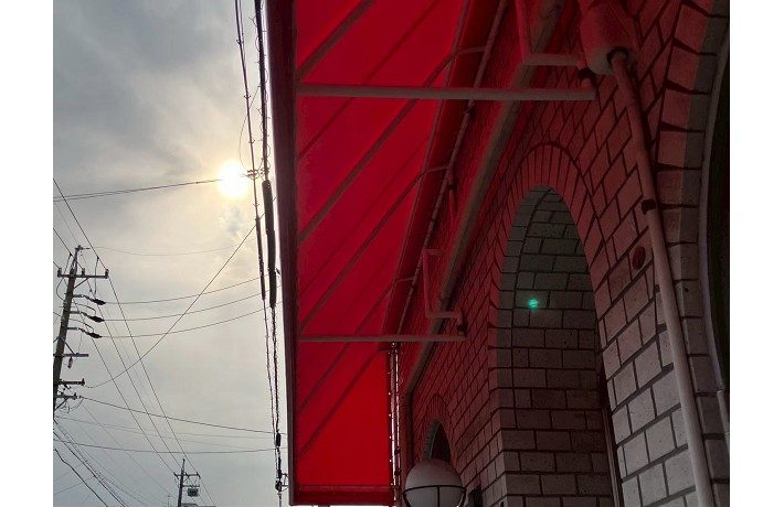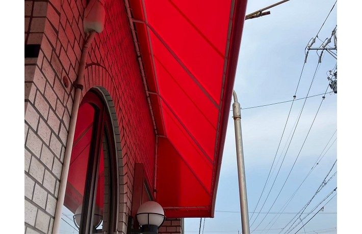 愛知県にて長さ7.2m 奥行0.7m庇テントの張替工事を行いました。・・・