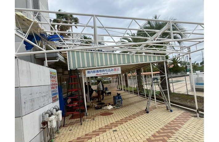愛知県にて間口2.4m 長さ5m階段テントの新設工事を行いました。・・・