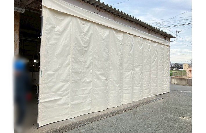 愛知県にて長さ8.6m 高さ3.4mスライドカーテンの新設工事を行いました。