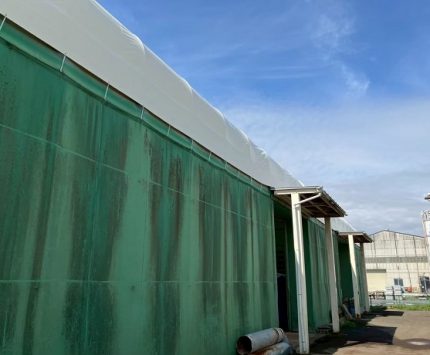 宮城県にて間口21.5m 奥行31.5m 軒高5m/2棟テント倉庫の張・・・